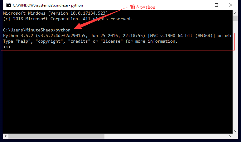 之后输入python,将出现以下信息,证明已经安装成功,之后退出即可。