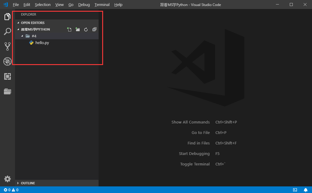 在 跟着MS学Python 文件夹里新建 #4 文件夹,在 #4 文件夹新建 hello.py 文件,右键用记事本打开,写入如下代码后保存退出:
