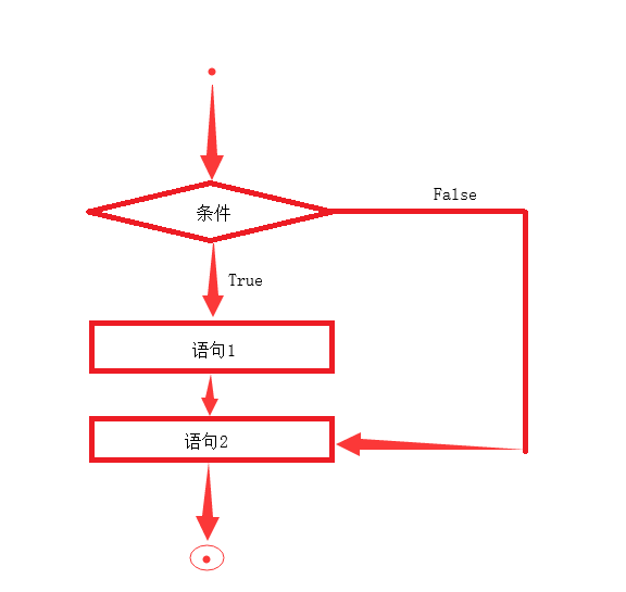 由上图可以看到,当条件为True是,执行语句1和语句2,当条件为False时,只执行语句2,这就是条件语句的迷人之处