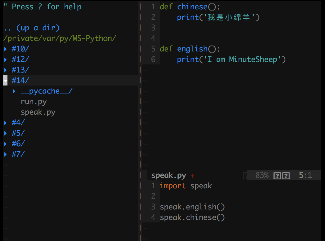 自己写一个speak模块,里面有chinese和english两种方法,在run.py文件中调用这两种方法: