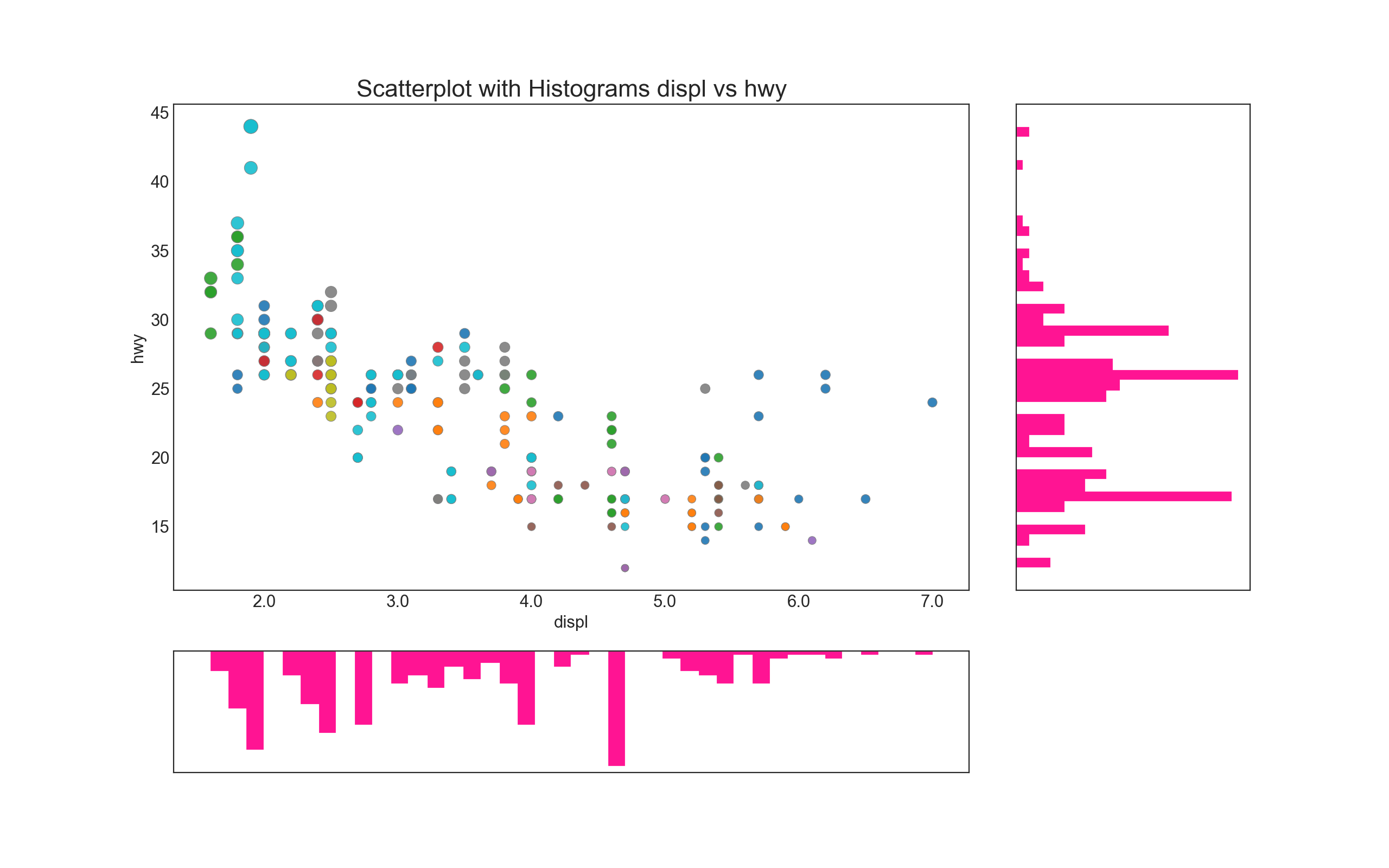 边缘直方图具有沿X和Y轴变量的直方图。这用于可视化X和Y之间的关系以及单独的X和Y的单变量分布。该图如果经常用于探索性数据分析(EDA)。